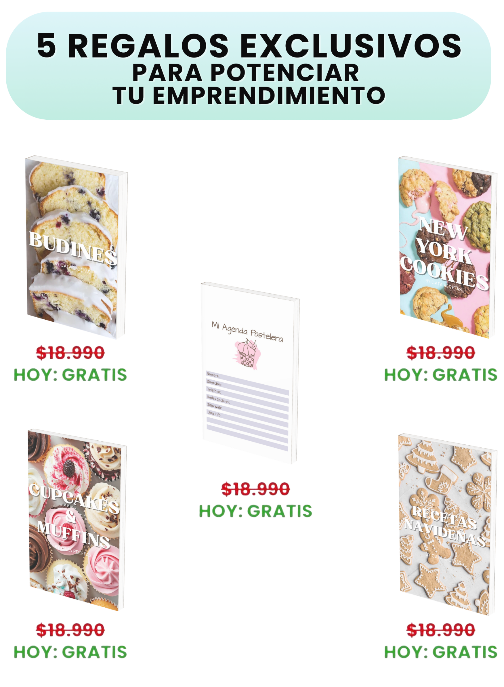 Vas a recibir 4 recetarios de regalo con recetas irresistibles, fáciles y rentables para vender desde casa.